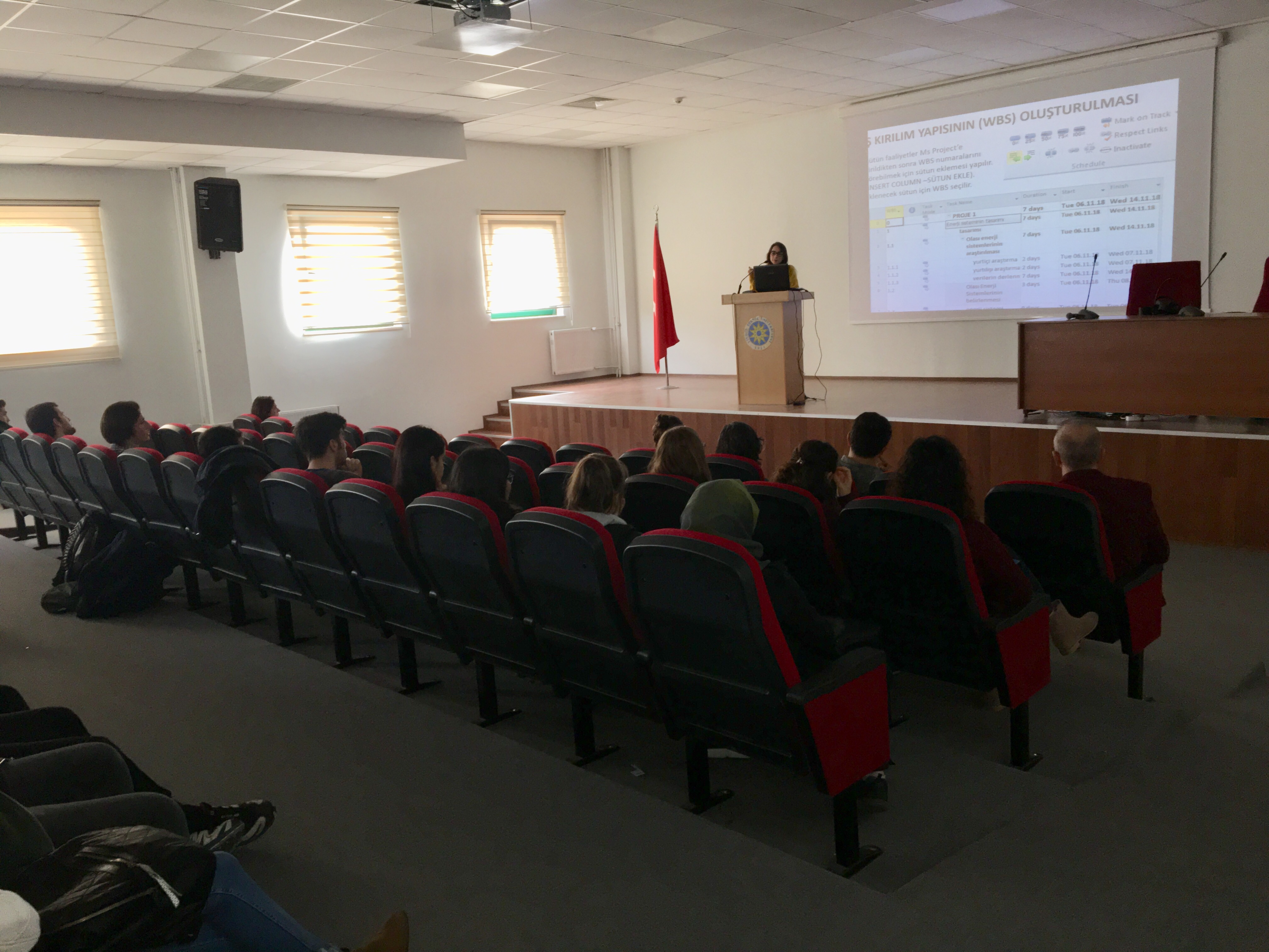 Kimya Mühendisliği ve Metalurji Malzeme Mühendisliği Bölümlerince ortak olarak yürütülen '’Girişimcilik ve Proje Yönetimi’’ ve ''Entrepreneurship and Project Management'' dersleri kapsamında Sayın İlknur Akyar'ın sunumu ile ''Mühendislik Bölümleri için Microsoft Project ile Proje Yönetimi” adlı seminer düzenlenmiştir.