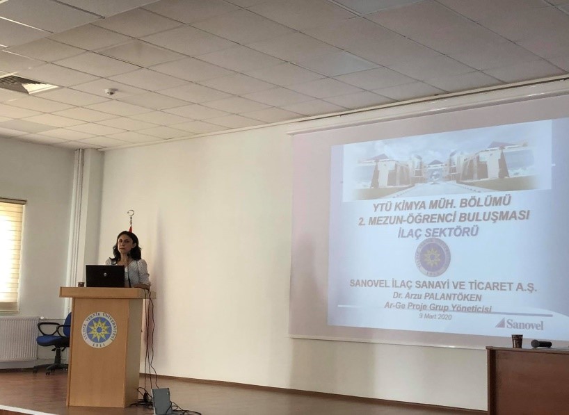Yıldız Teknik Üniversitesi, Kimya Mühendisliği Bölümü, Mezunlar ile İlişkiler ve Tanıtım Komisyonu’nun düzenlemiş olduğu farklı sektörlerde çalışan 4 mezunumuz, Sanovel İlaç Sanayi ve Ticaret A.Ş. Ar-Ge Proje Grup Yöneticisi Dr. Arzu Palantöken, Tat Gıda Sanayi A.Ş. Ar-Ge ve Kalite Güvence Grup Yöneticisi Dr. Elif Belbez, EF Kimya San. ve Tic. LTD. ŞTİ İş Geliştirme Uzmanı Kimya Yüksek Mühendisi Emine Akbulut ve INTERTEK Test Hizmetleri A.Ş. Oyuncak&Hardline Laboratuvar Müdürü Recep Yarlığan ile 2. Mezun-Öğrenci buluşması 09 Mart 2020 tarihinde fakültemiz bünyesinde bulunan konferans salonunda 4. sınıf öğrencilerimizin yoğun katılımı ile gerçekleşmiştir. Mezunlarımıza sertifikalarını bölümümüz adına öğretim üyelerinden, Mezunlar ile İlişkiler ve Tanıtım Komisyonu Koordinatörü Doç. Dr. A. Seyhun Kıpçak takdim etmiştir.